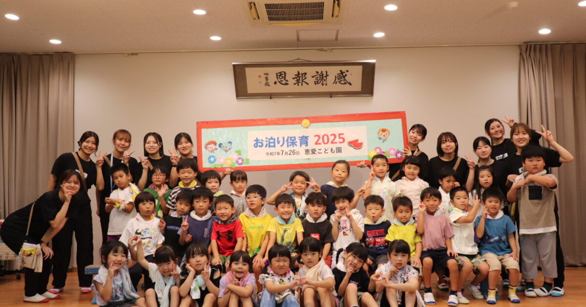 令和7年7月26日(土)~27日(日) 今年は、年長児(さくらぐみ)と卒園児(1年生)で恵愛こども園にてお泊り保育を行いました。 ◉すいか割り ◉クッキング ・カレーライス ・サラダ ・フルーチェ ◉インタビュー・交流会 […]