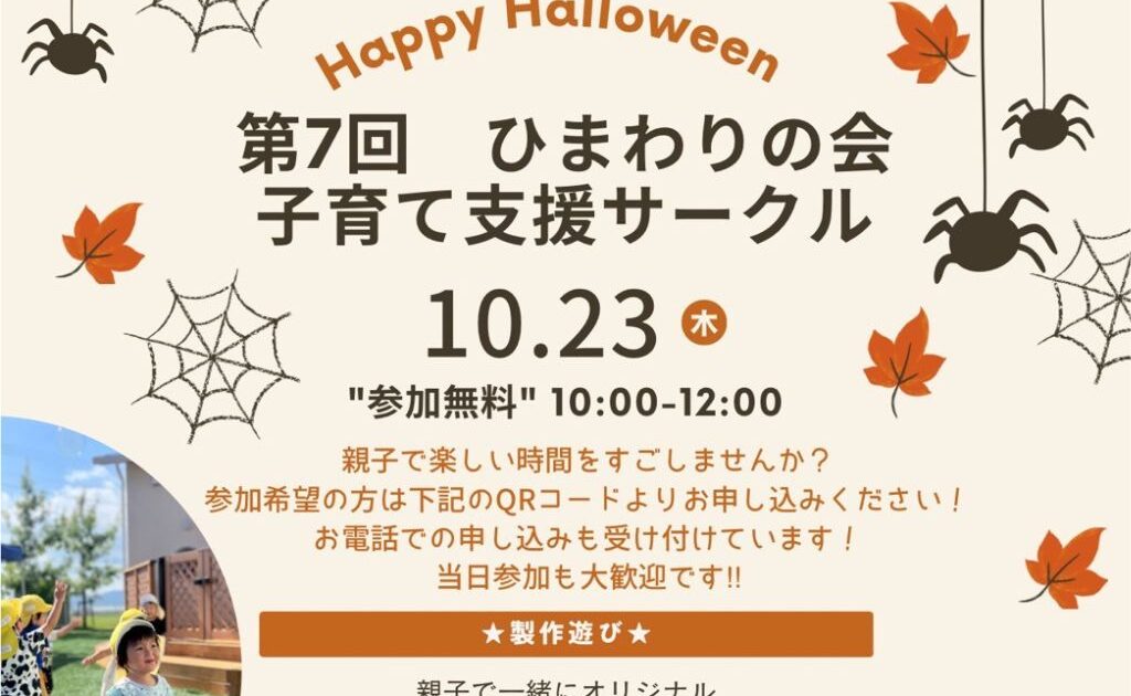 お知らせ 第7回 ひまわりの会 子育て支援サークル 2025.10.02 親子で一緒に楽しめる「ひまわりの会 子育て支援サークル」第7回開催!ハロウィン衣装を手作りして園内散歩♪ 参加無料・当日参加も大歓迎です。