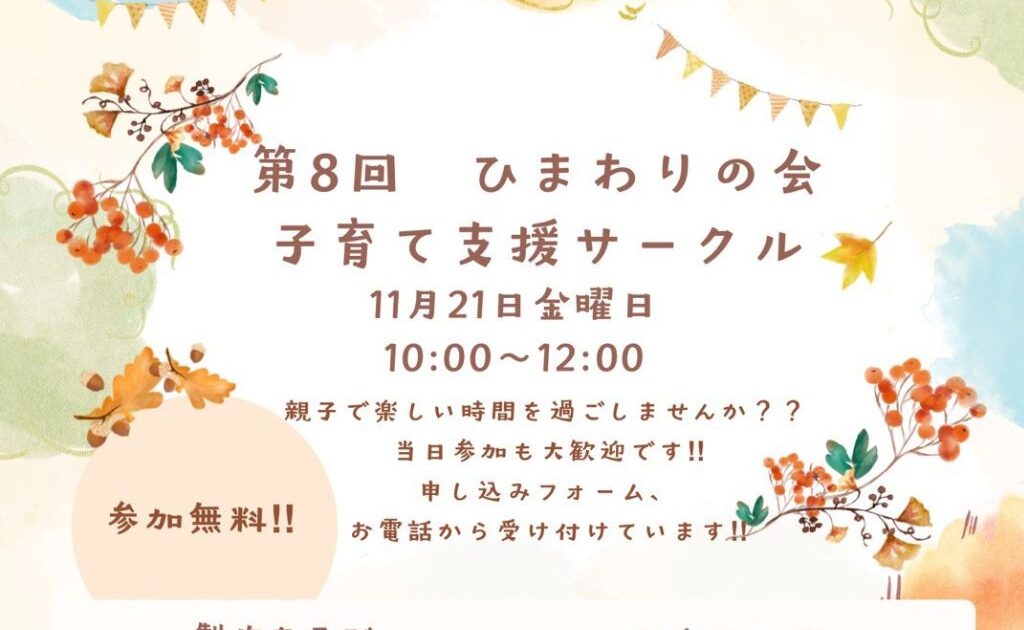 日時)11月21日(金)10:00〜12:00 (参加無料) 親子で楽しい時間をすごしませんか?参加希望の方は申込フォーム、またはお電話よりお申し込みください。 当日参加も大歓迎です!! ★製作遊び★ 絵の具を使って親子 […]