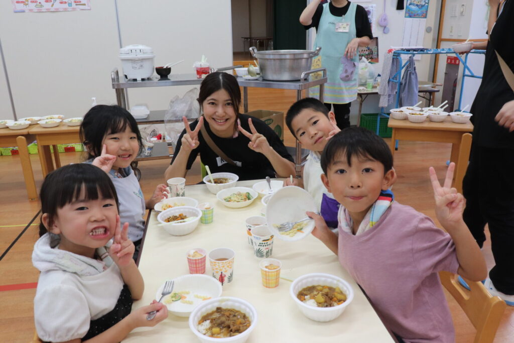 夕ご飯づくりでは、みんなで分担して、野菜を切ったりルーを混ぜたりして仲良く協力しながら楽しみました。