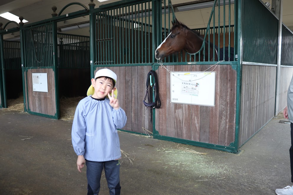 大きな馬を目の前にして、最初は少しドキドキしていた子どもたちでしたが、実際に馬に会うと「かわいい!」「大きいね!!」と嬉しそうな声がたくさん聞こえてきました。