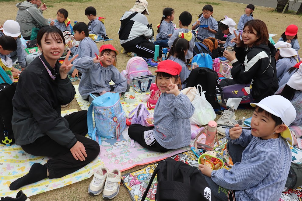おうちの方が作ってくれたお弁当を嬉しそうに見せ合いながら、みんなで美味しくいただきました。