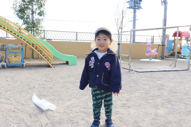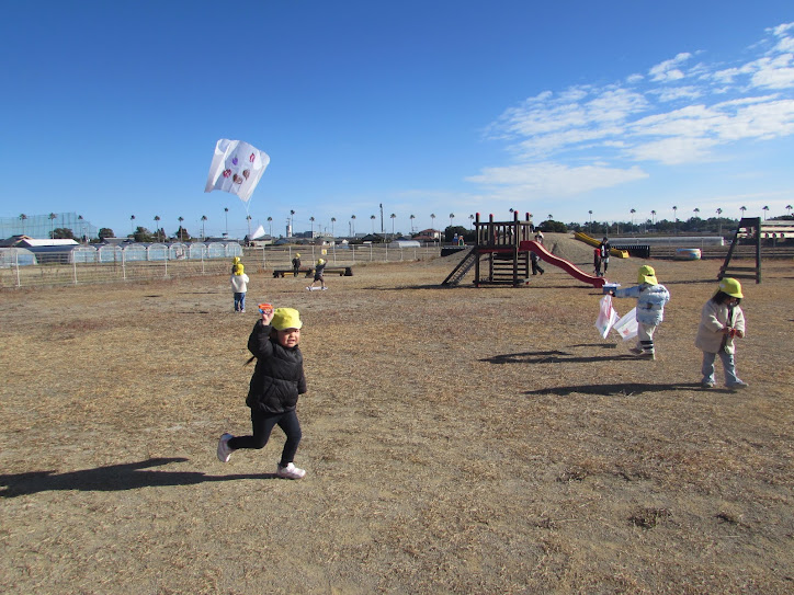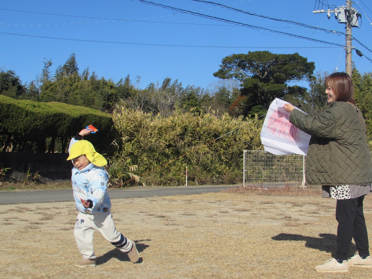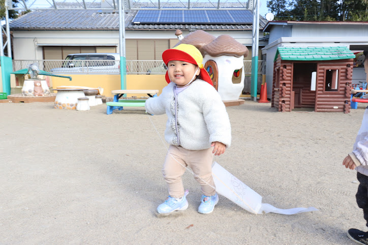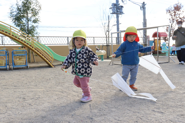 たこのひもを持って園庭を走り回って、たこあげを楽しむ姿が見られました。