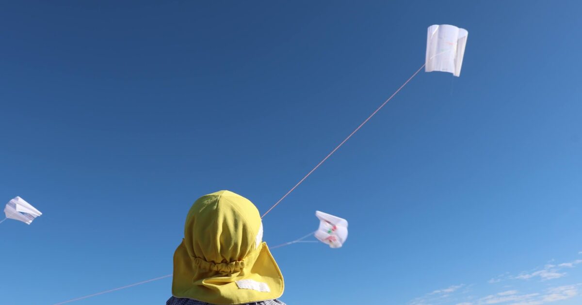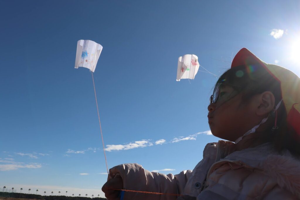 風にのって上がるたこに、「上がったー!」と大歓声でした。