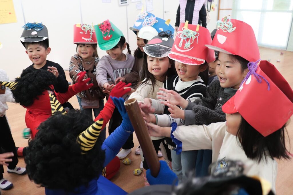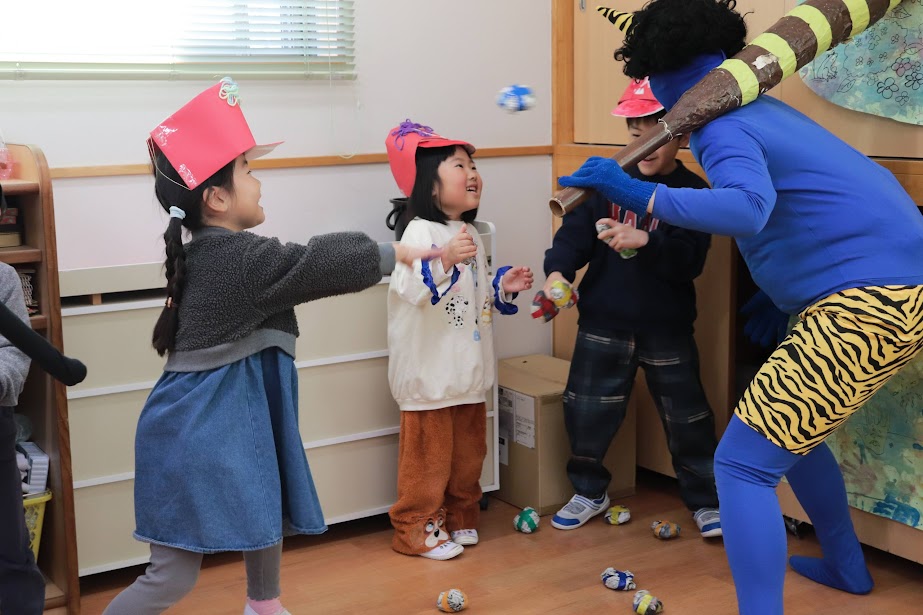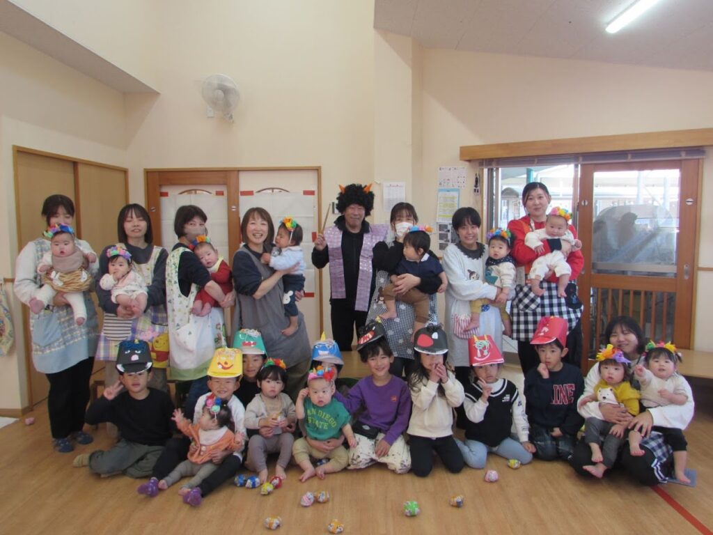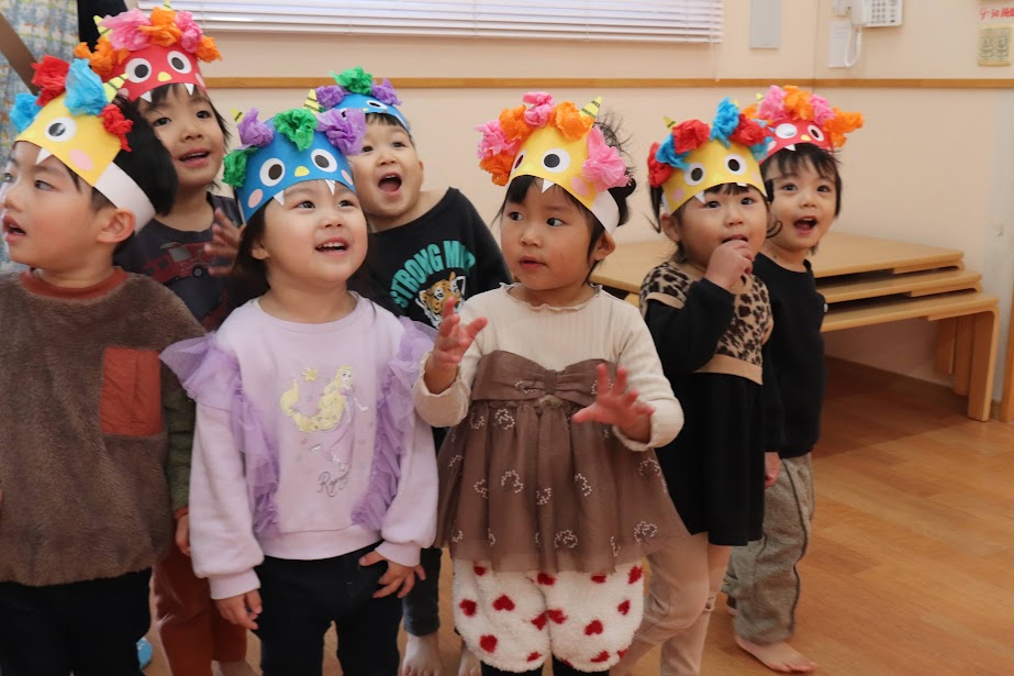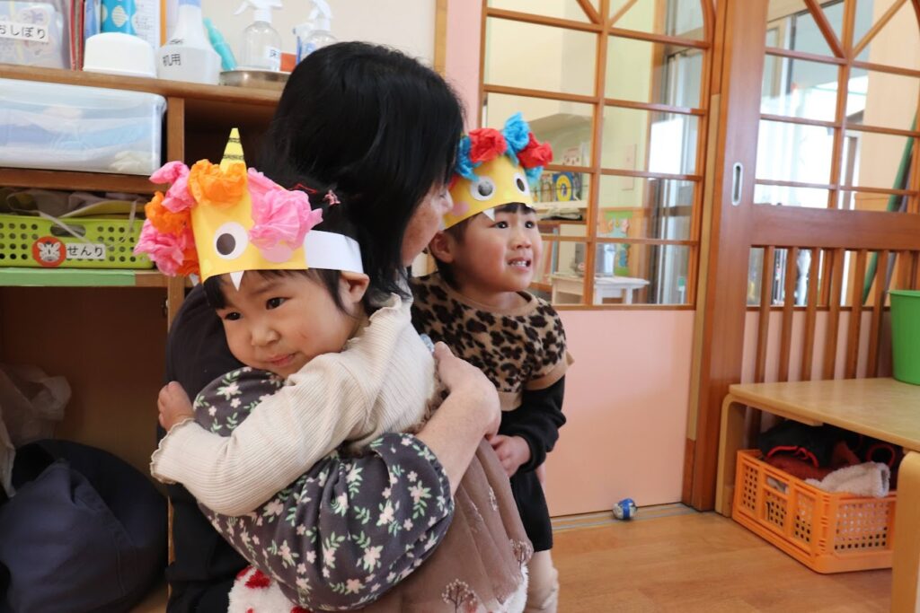 未満児(0.1歳児)クラスには、年長児が鬼役として参加してくれました。